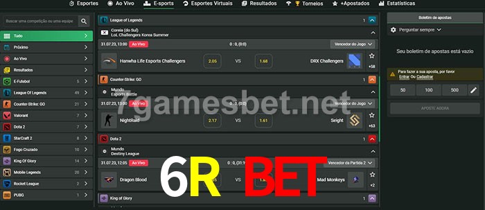 O 6R Bet oferece uma grande seleção de opções de apostas em e-sports com probabilidades competitivas